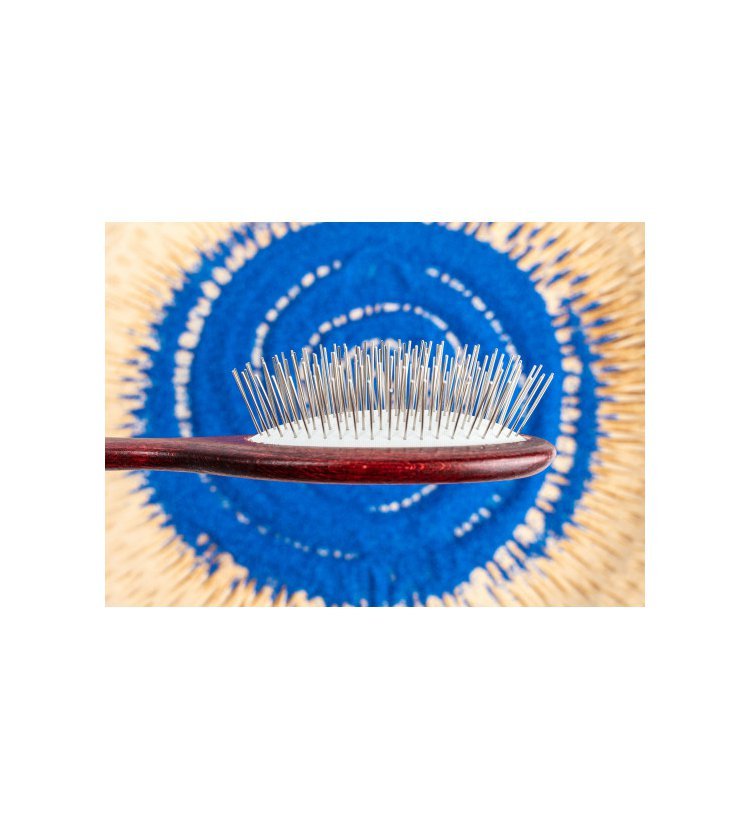 Profesionální kartáč pro dlouhosrsté psy s 2 cm dlouhými hroty, které jemně pročesávají srst až k podsadě. Ideální pro výstavní úpravu i každodenní péči.