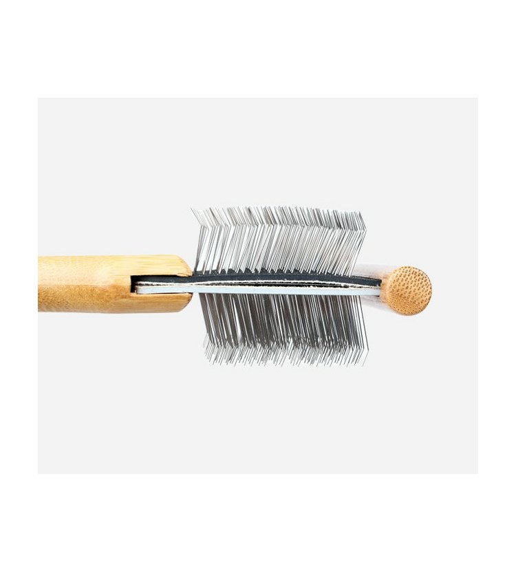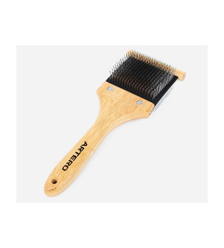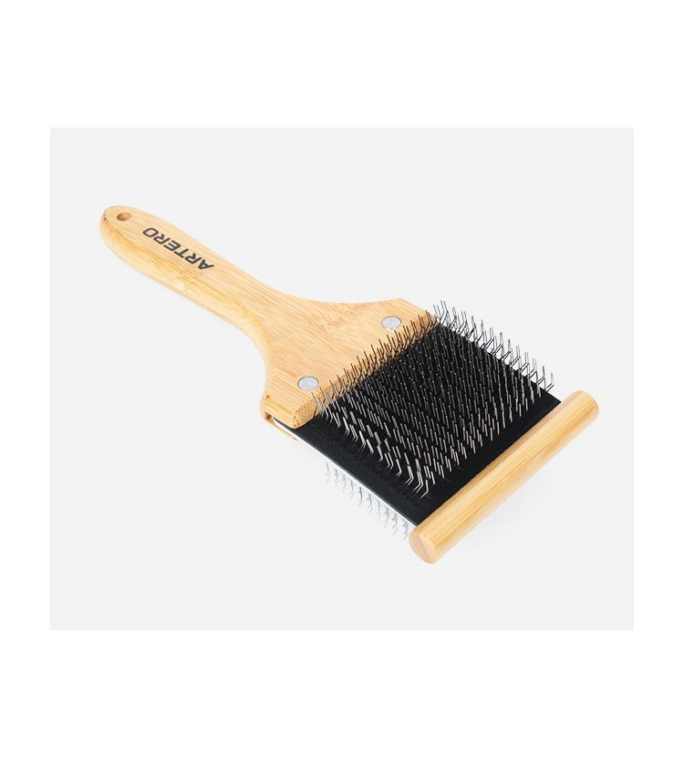 Artero Bella – Dvojitý flexibilní kartáč z bambusu je univerzální profesionální nástroj, který spojuje dvě funkce v jednom kartáči. Díky flexibilní hlavici a dvěma odlišným pracovním stranám poskytuje maximální efektivitu při česání i rozčesávání všech typů srsti.